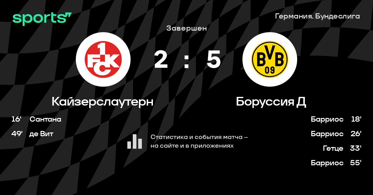 Лэнгерак - Леве, Сантана, Суботич, Овомойела - Гетце, Гюндоган, Кель - Перишич, Левандовски, БарриосЗапасные: Вайденфеллер, Гросскройтц, Хуммельс, Пишчек, Ляйтнер, Кагава, Кринге