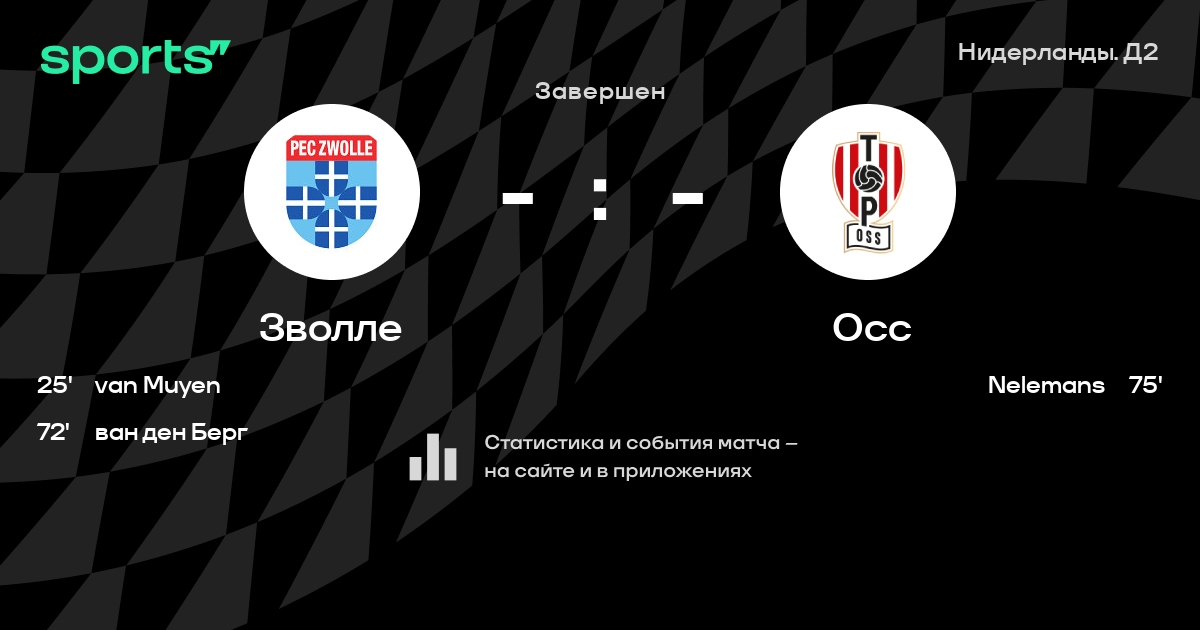 | 1 | Зволле | 34 | 22 | 6 | 6 | 68 | 34 | +34 | 72 | ||