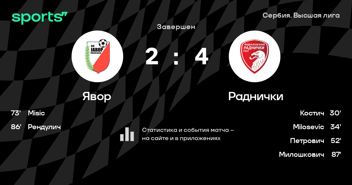 Явор – Раднички: коэффициенты