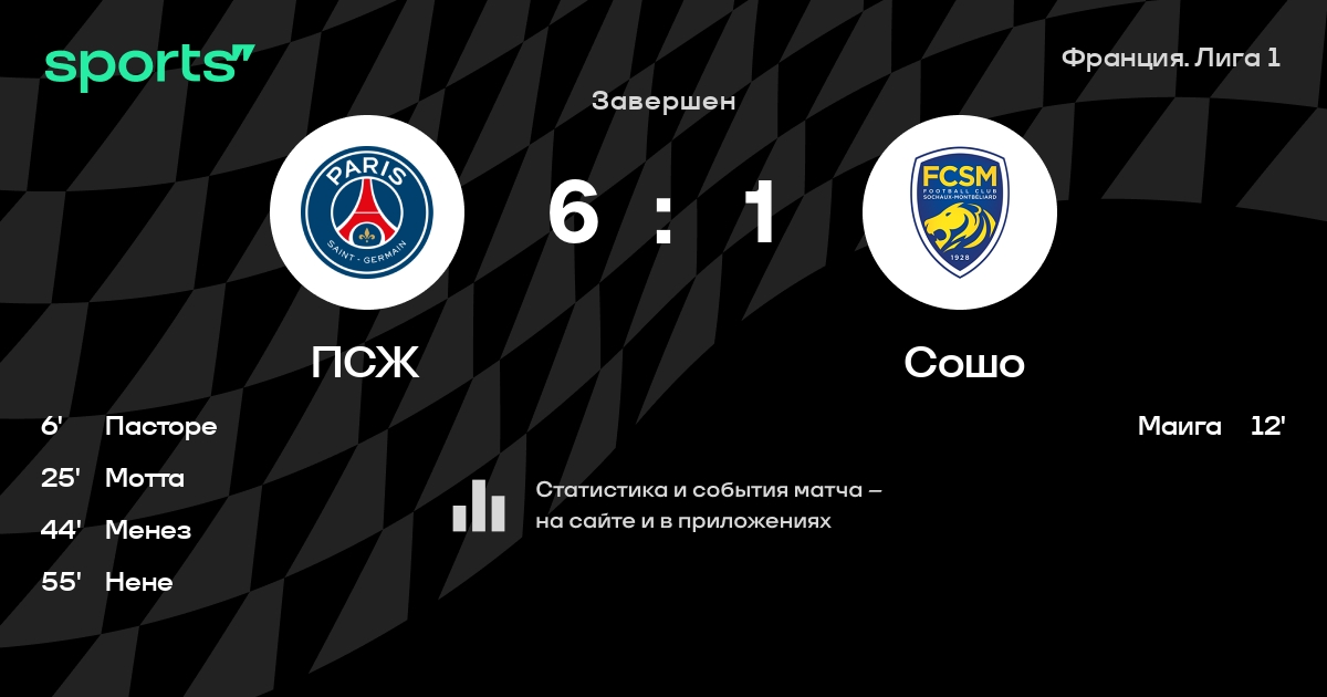 Чемпионат Франции. 12-й тур. «Сошо» уступил ПСЖ, «Ницца» победила «Ле-Ман»