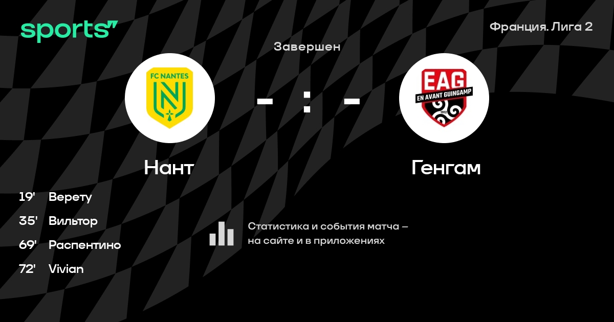 Франция. Лига 2. 4-й тур. «Нант» разгромил «Генгам» и другие результаты
