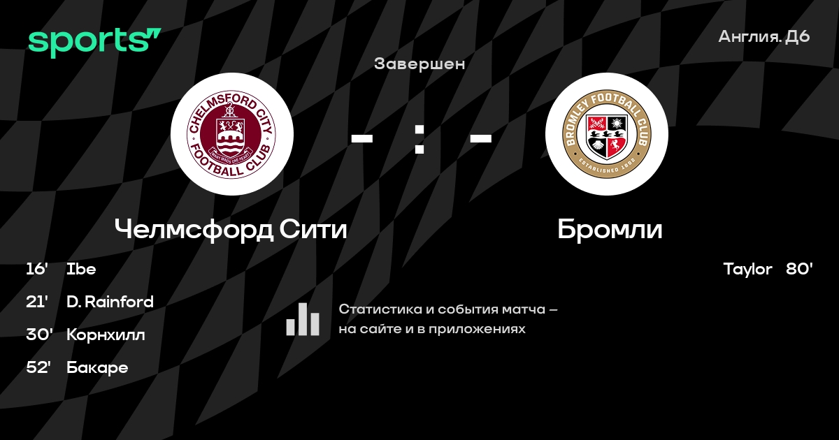 Форкаст - Patterson, Gillman, Henriques, Harwood, Dolan - Waldren, Rhule, Taylor - Голдберг, АрабаЗапасные: , Jones, Udoji, Smith, Greene, Hill
