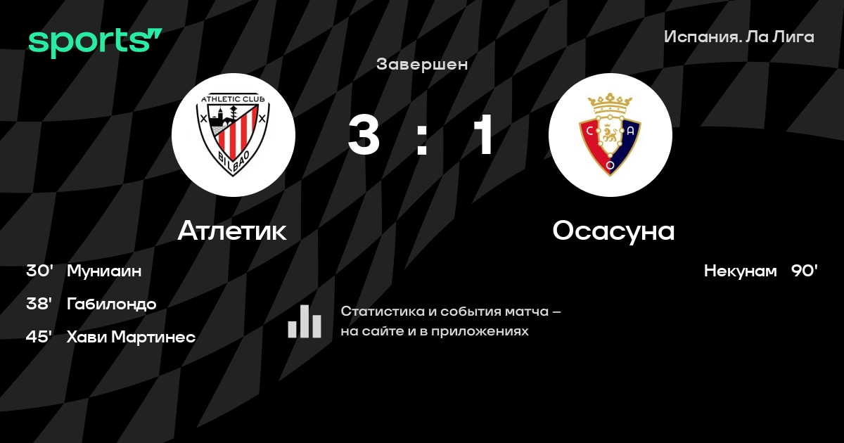 Чемпионат Испании. 8-й тур. «Осасуна» уступила в Бильбао и другие результаты
