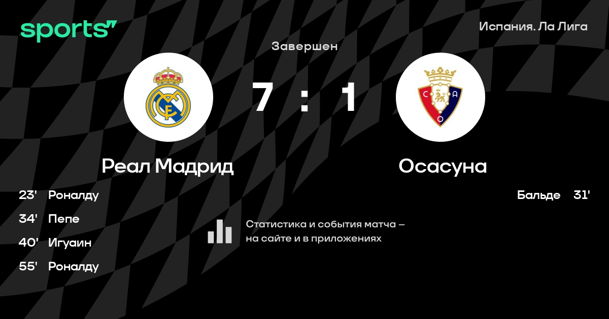 Касильяс - Рамос, Коэнтрау, Пепе, Арбелоа - Хаби Алонсо, Озил, Ди Мария, Хедира - Роналду, ИгуаинЗапасные: Адан, Альбиоль, Варан, Диарра, Бензема, Кальехон