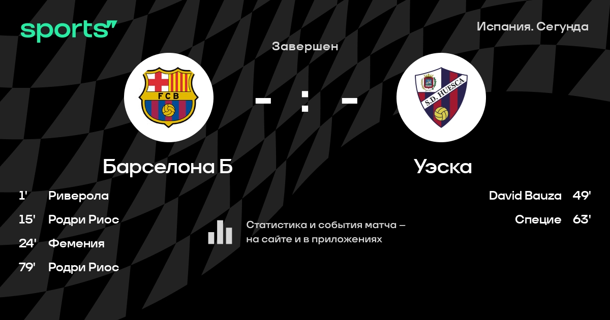 Оласабаль - Бартра, Фемения, Муньеса, Монтойя, Планас, Армандо - Риверола, Рафинья - Деулофеу, Родри РиосЗапасные: Миньо, Серджи Гомес, Балиу, Росель, Эспиноса, Лобато, Донгу