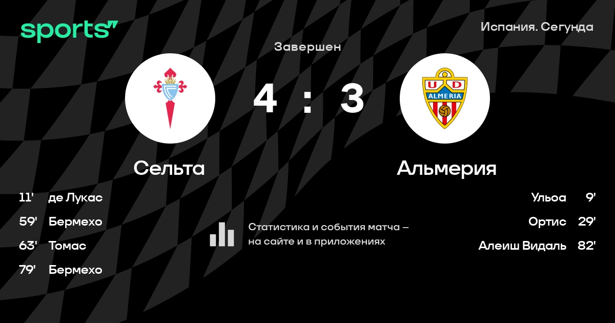 Испания. Сегунда. 26-й тур. «Сельта» и «Альмерия» забили 7 голов на двоих и другие матчи