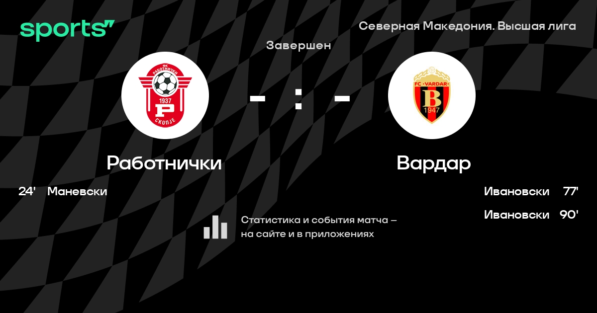 | 1 | Вардар | 33 | 22 | 10 | 1 | 50 | 15 | +35 | 76 | ||