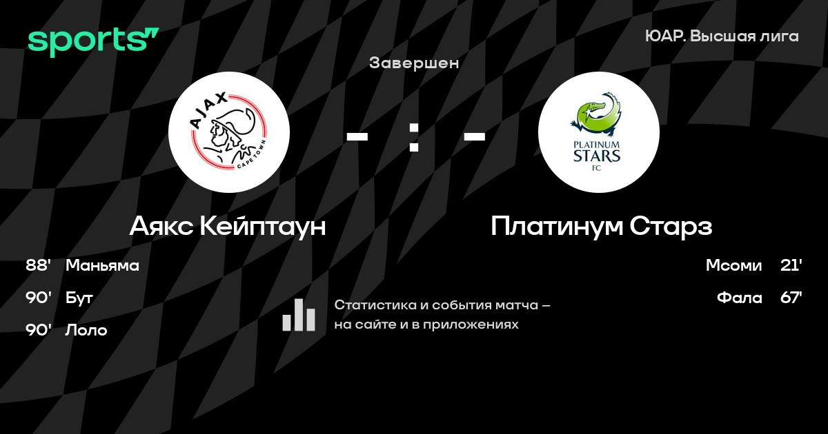 Трансляция Аякс Кейптаун - Платинум Старз