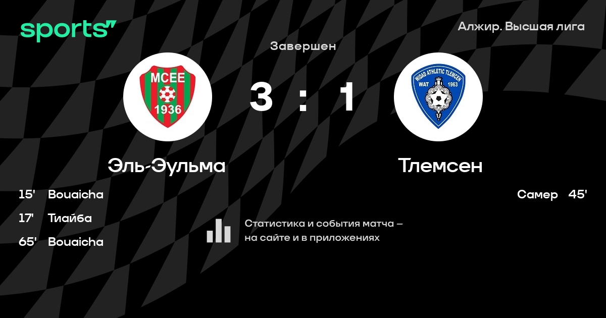 | 11 | Эль-Эульма | 30 | 10 | 8 | 12 | 38 | 39 | -1 | 38 | ||