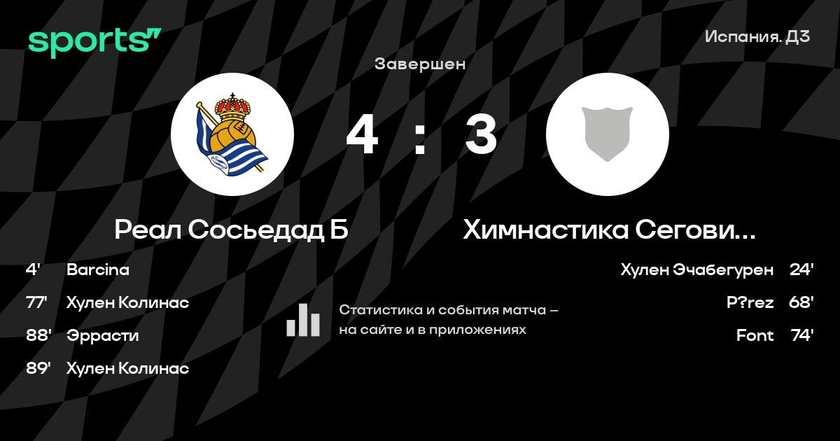 Трансляция Реал Сосьедад Б - Химнастика Сеговиана