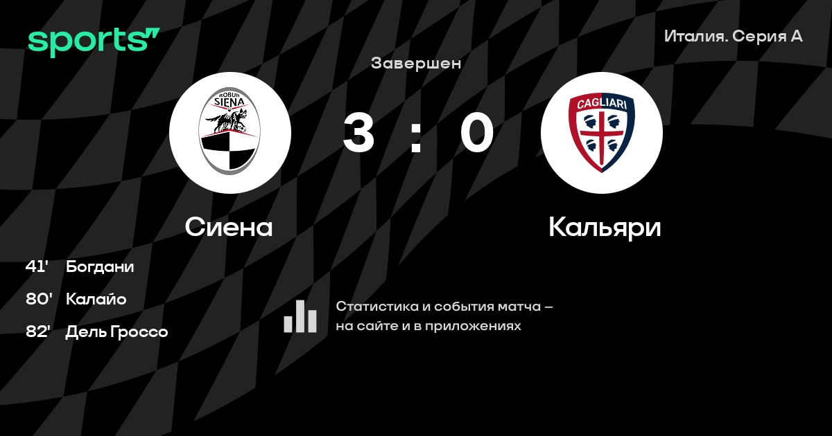 Агацци - Астори, Пизано, Ариаудо - Конти, Коссу, Наингголан, Экдаль, Дессена - Нене, Тиаго РибейроЗапасные: Аврамов, Гоцци, Перико, Бови, Сеппелини, Ларривей, Ибарбо