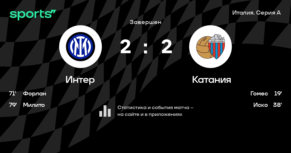 Жулио Сезар - Фараони, Лусио, Самуэль, Дзанетти, Нагатомо - Паломбо, Камбьяссо - Паццини, Форлан, МилитоЗапасные: Кастеллацци, Жезус, Кордоба, Оби, Снейдер, Поли, Сарате