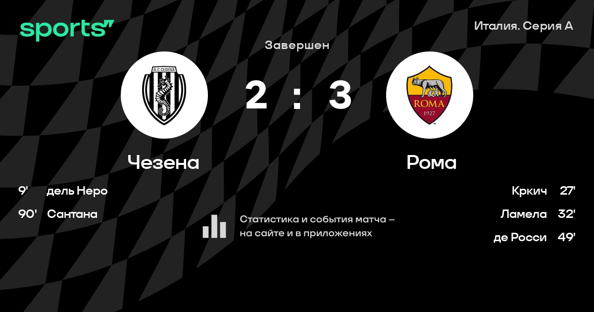 Лобонц - Кьер, Хосе Анхель, Рози, Хайнце - Матос, де Росси, Пьянич, Ламела - Кркич, ТоттиЗапасные: Курчи, Перротта, Освальдо, Борини
