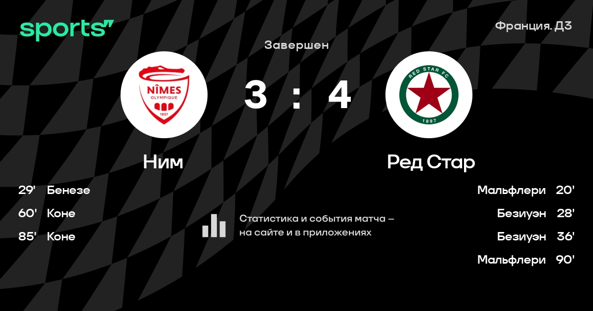 Мервиль - Carlier, Пулен, Stošić, Sidibé, Пундже - Ogounbiyi, Хадду - Haguy, Коне, БенезеЗапасные: Al Shaïbani, Пьосель, Salert, Уаттара, Рипар