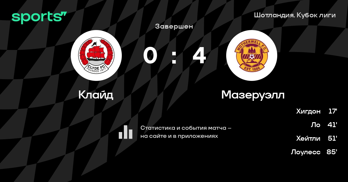 Клайд проигрывает в 3 последних матчах в турнире «Шотландия. Кубок лиги»
