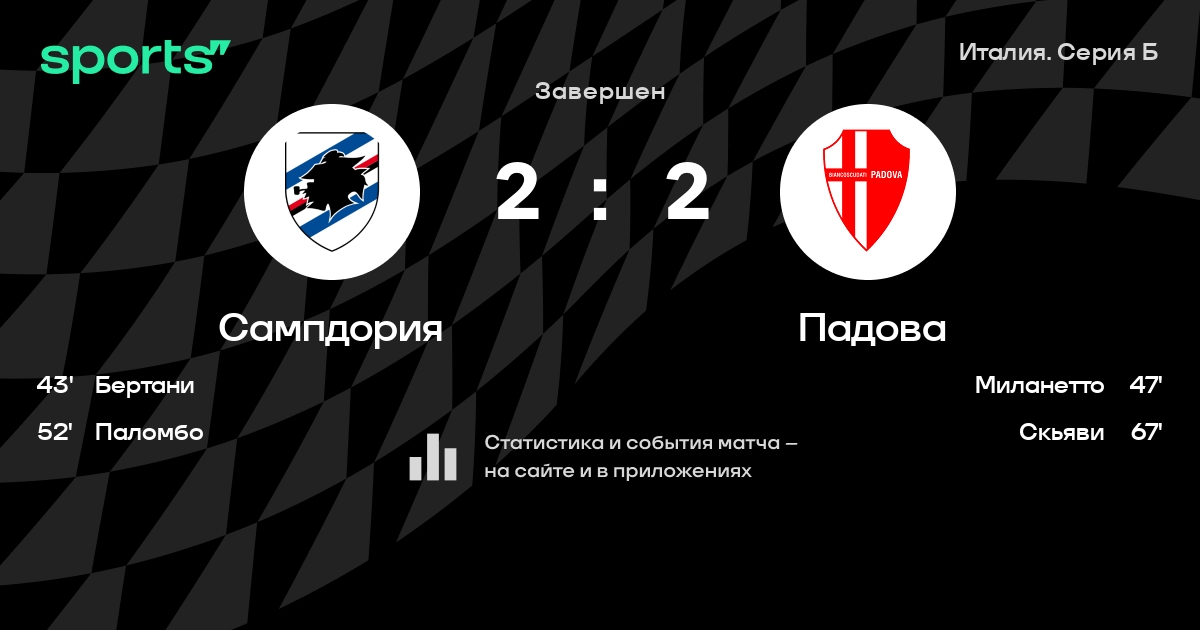 Ромеро - Падалино, Кастеллини, Коста, Аккарди, Вольта - Паломбо, Обианг, Коман - Бертани, ПоцциЗапасные: Анжело, Рисполи, Сориано, Дессена
