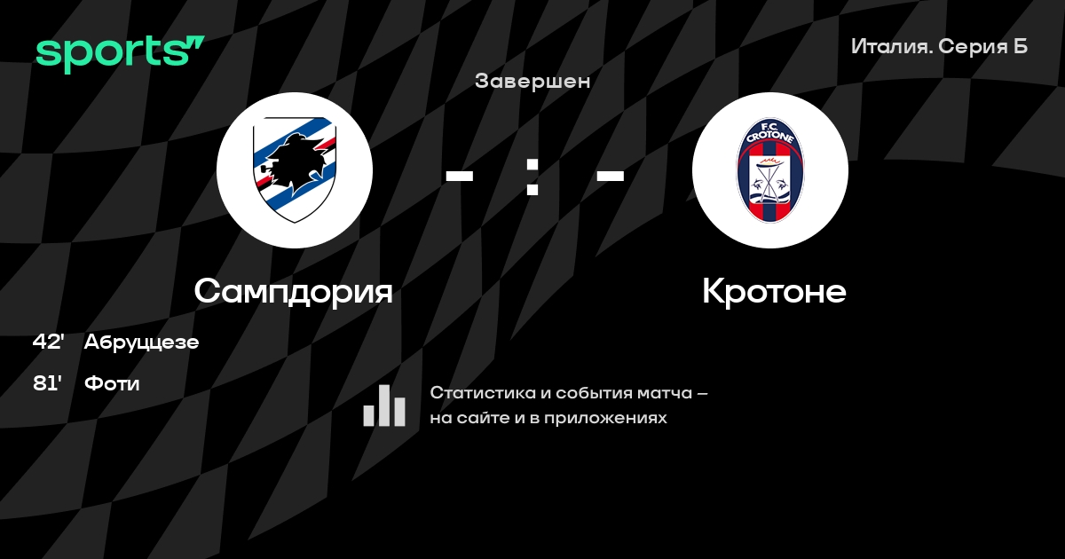 Италия. Серия В. 13-й тур. «Сампдория» обыграла «Кротоне» и другие результаты