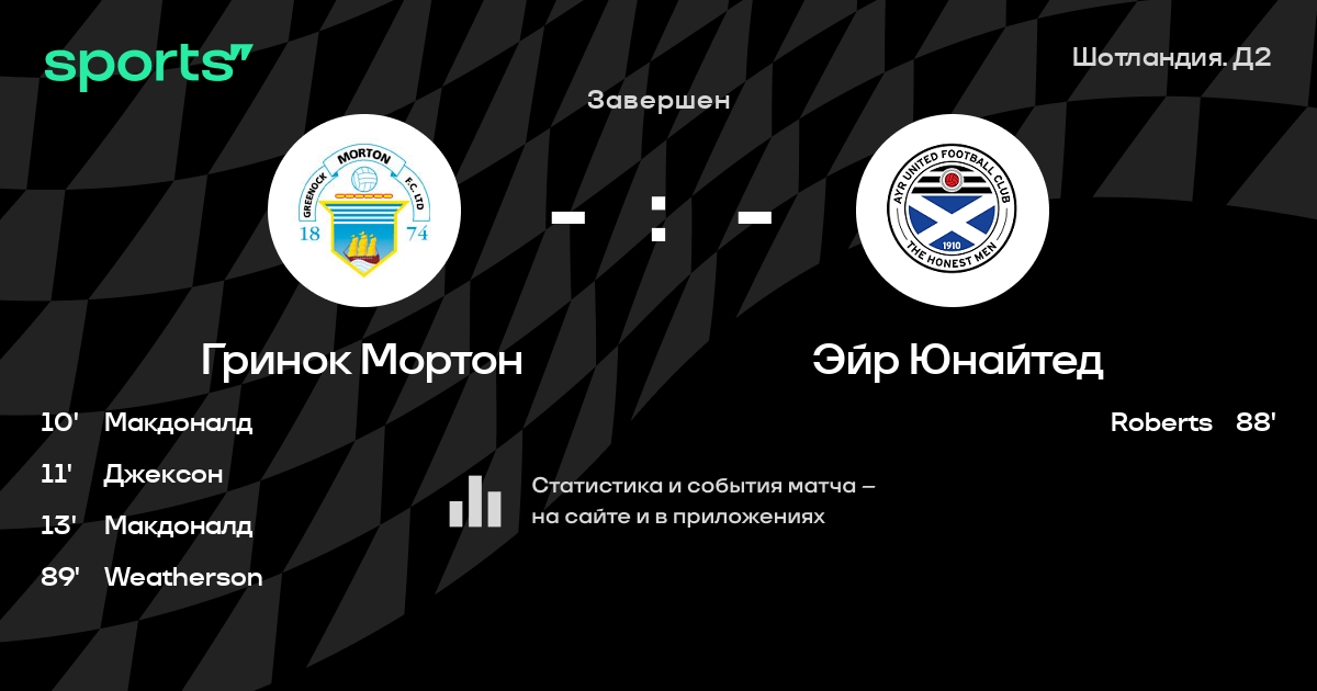 | 3 | Фалкирк | 36 | 13 | 13 | 10 | 53 | 48 | +5 | 52 | ||