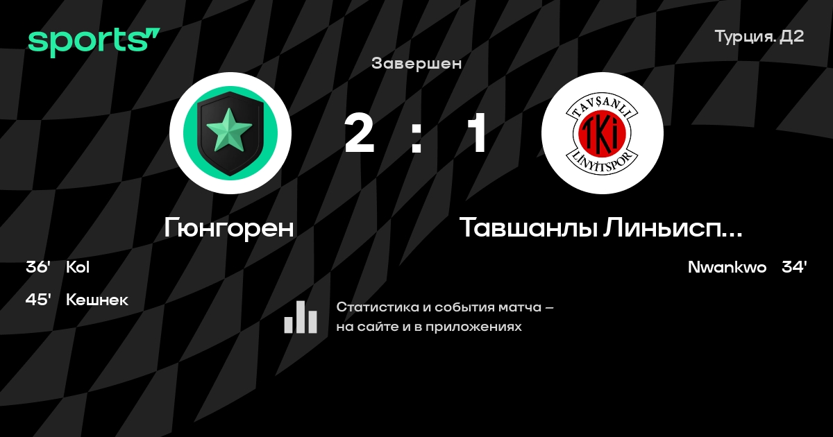 Гюнгорен - Тавшанлы Линьиспор: положение в турнире