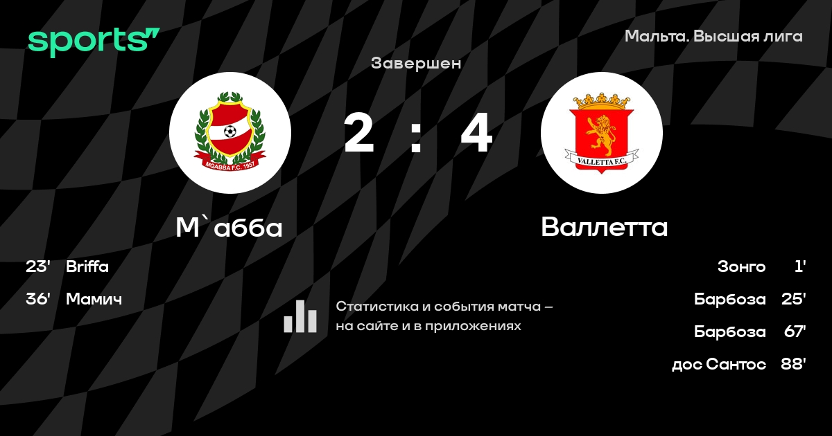 Хогг - Аццопарди, Каруана - Бриффа, Пейс, Фальцон, дос Сантос, Аджиус - Зонго, Барбоза, ЭффионгЗапасные: Чини, Араб, Camilleri, Cassar, Дзаммит, Psaila, Араб