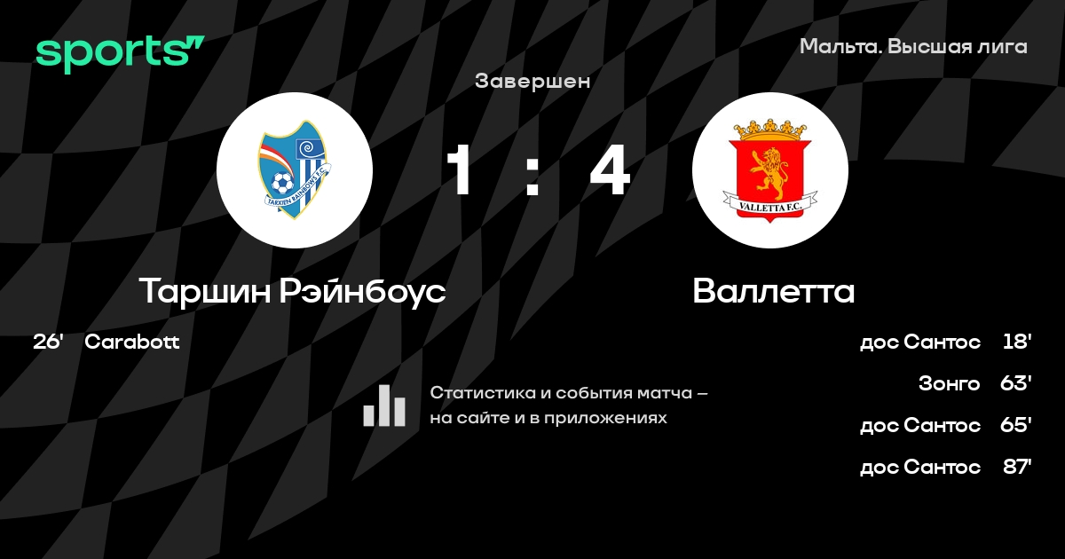 Таршин Рэйнбоус – Валлетта: коэффициенты