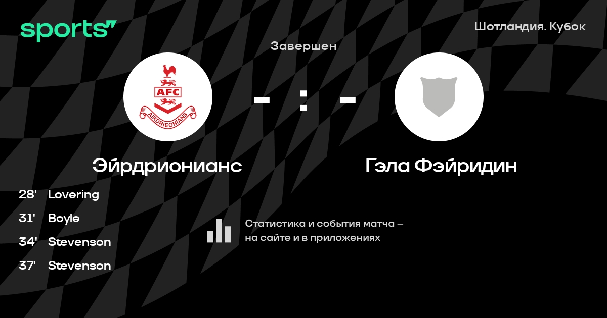Turnbull - Hay - Hunter, Young, Wilson, Lothian, Brown - Livingstone, Haye, Rossi, BruntonЗапасные: Lynch, McBride, Glass, Jackson, Grass