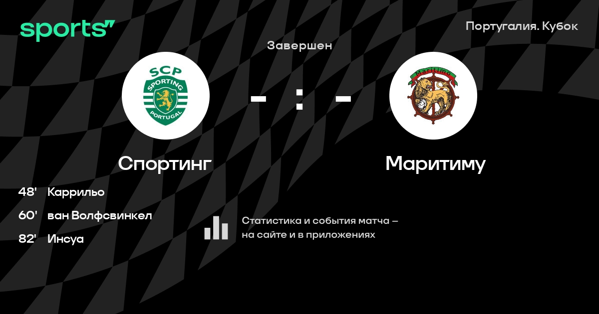 Руй Патрисиу - Полга, Инсуа, Оньеву, Жоау Перейра, Каррису - Схарс, Капель, Андре Мартинш, Каррильо - ван ВолфсвинкелЗапасные: , Арьяс, Перейринья, Сантуш