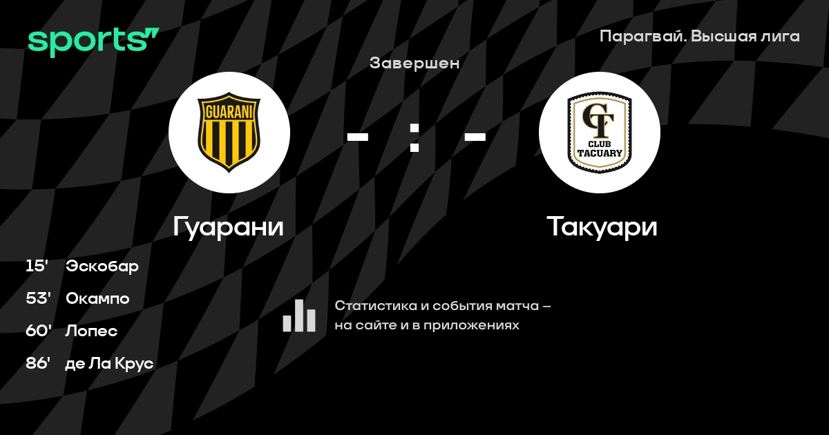 | 6 | Гуарани | 22 | 8 | 6 | 8 | 28 | 25 | +3 | 30 | ||