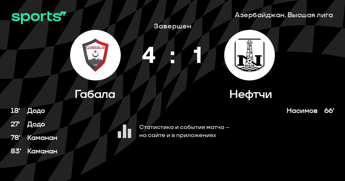 Дорошев - Олферс, Шукюров, Бруно Силва, Круз, Аббасов, Баранин - Чертоганов - Додо, Менди, КамананЗапасные: Смит, Юнисоглу, Мамедов, Camara, Исаев, Гусейнов