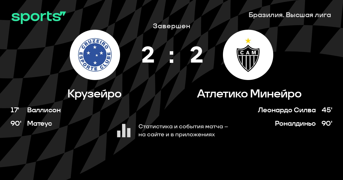 Фабио - Лео, Тиаго Карвальо, Матеус - Монтильо, Лукас Силва, Тинга, Эвертон, Геррейро - Фабиньо, БоржесЗапасные: Рафаэл, Донато, Диего Ренан, Оливейра, Силва, Валлисон, Alves Herculano