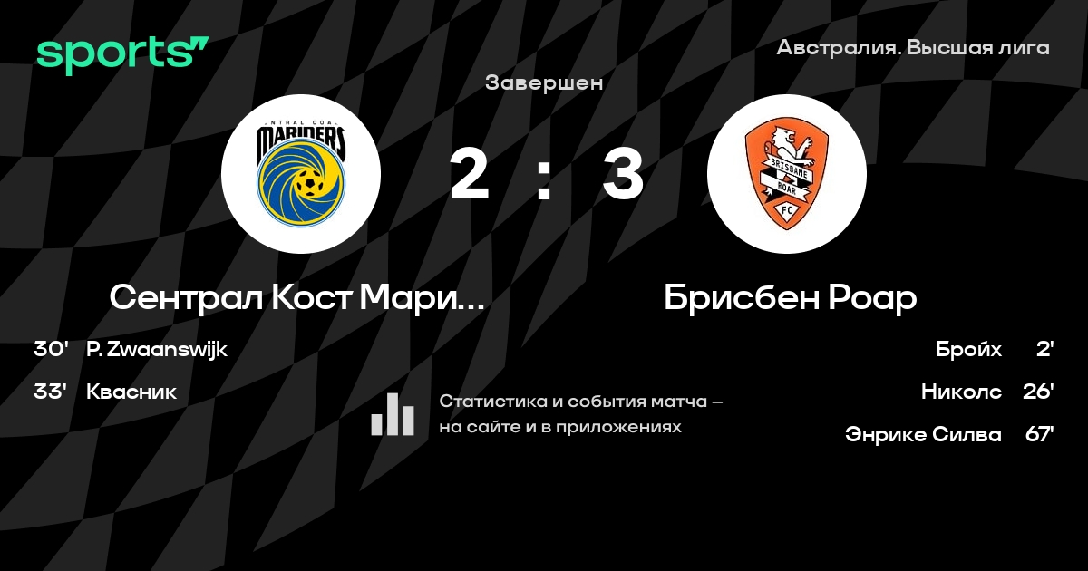 Трансляция Сентрал Кост Маринерс - Брисбен Роар