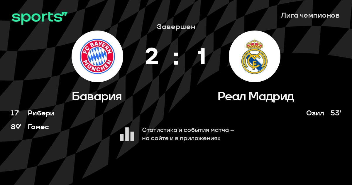 Нойер - Дж. Боатенг, Алаба, Бадштубер, Лам - Луис Густаво, Кроос, Рибери, Швайнштайгер - Роббен, ГомесЗапасные: Бутт, Рафинья, Контенто, Мюллер