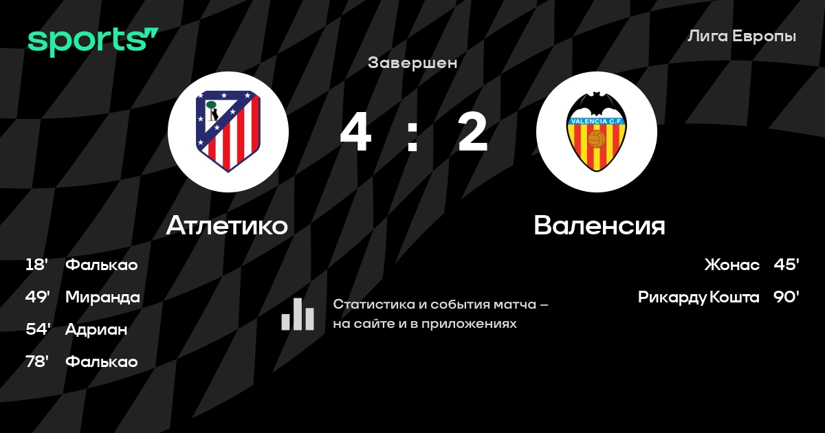 Куртуа - Хуанфран, Филипе Луис, Домингес, Суарес, Миранда - Туран, Диего, Габи - Адриан, ФалькаоЗапасные: Асенхо, Коке, Ассунсао, Сальвио, Мартин