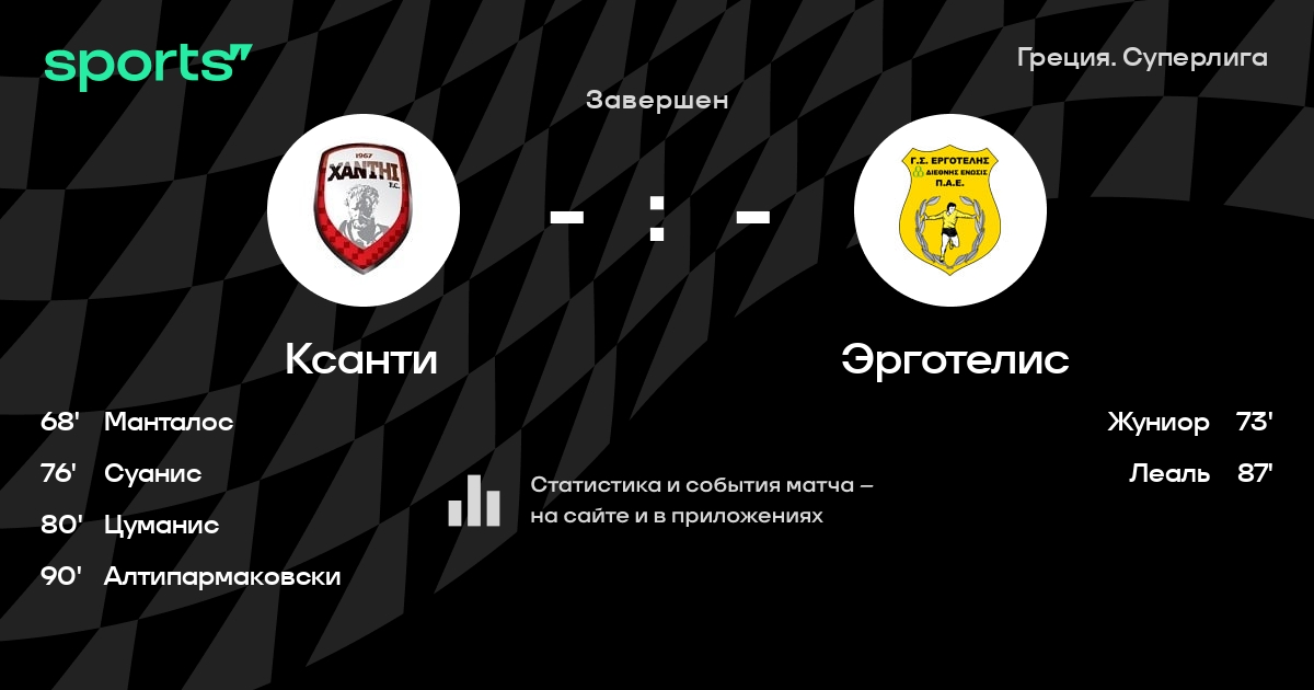 Кавусакис - Шашиашвили, Цанакакис, Хиблингер, Саррис - Кирьякидис, Фрагулакис, Ханти, Жуниор, Куцианикулис - КацикокерисЗапасные: Пирсон, Дарлас, Кандилакис, Сантос, Олисе, Ренцас, Леаль