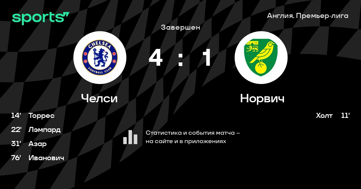 Чех - Коул, Давид Луиз, Терри, Иванович - Азар, Оскар, Мата, Лэмпард, Оби Микел - ТорресЗапасные: Тернбулл, Кэйхилл, Аспиликуэта, Бертран, Рамирес, Мозес, Ромеу