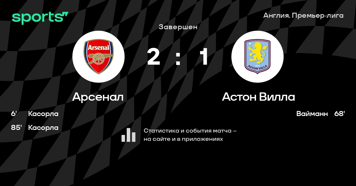 «Арсенал» – «Астон Вилла» – 2:1. Дубль Касорлы принес победу «канонирам»