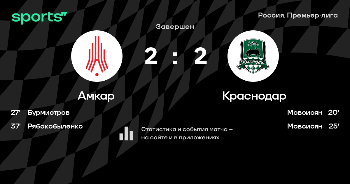Трансляция Амкар - Краснодар