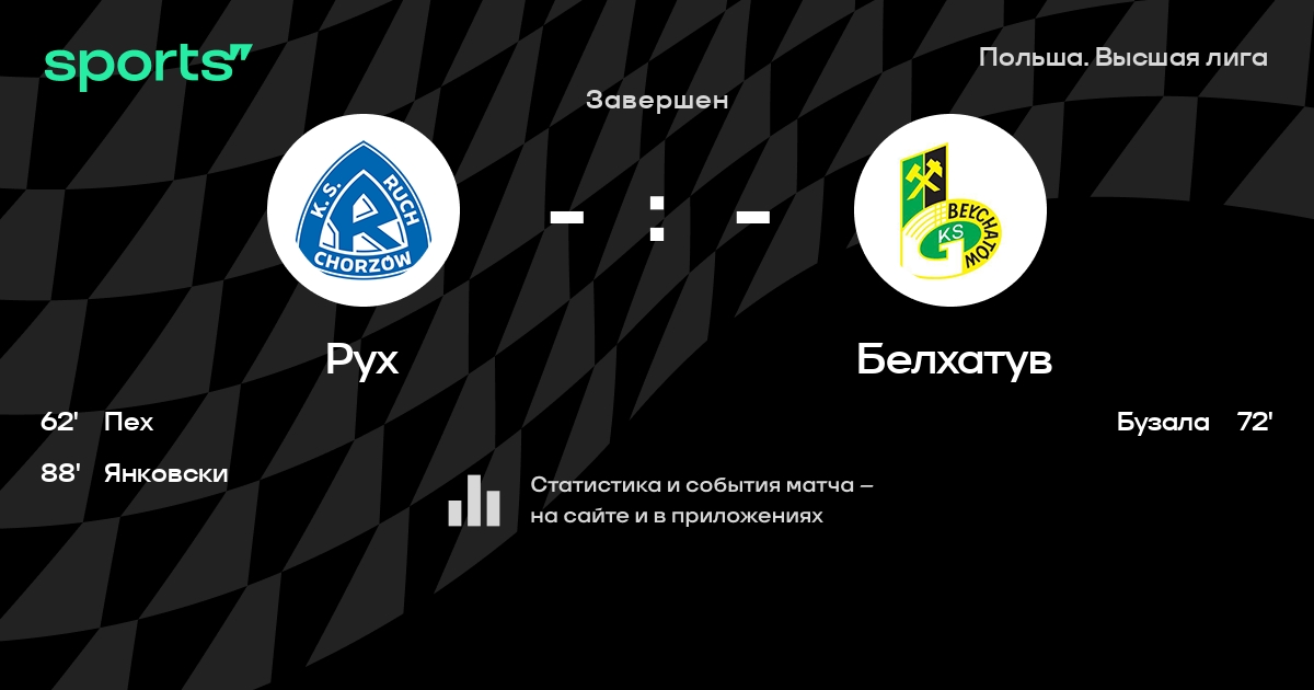 Пешкович - Ставарчик, Садлок, Шиндровски, Кикут - Страка, Малиновски, Стажиньски, Зенчук - Шултес, ПехЗапасные: Каминьски, Джокич, Левчук, Смектала, Лисовски, Недзелян, Янковски