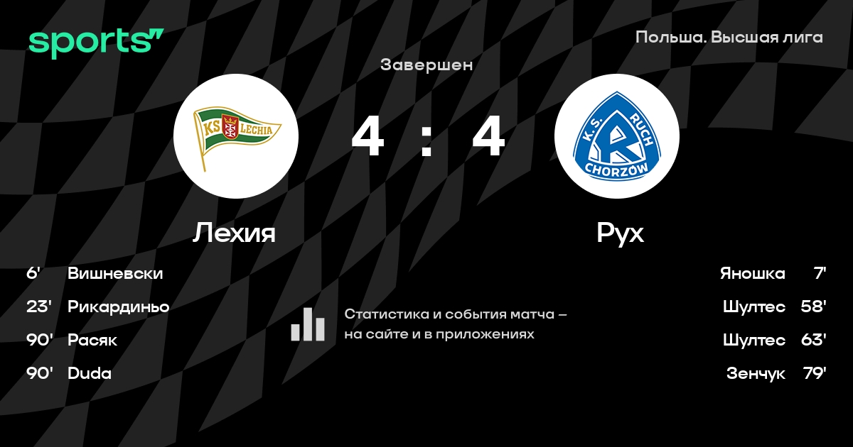 Бухалик - Брожек, Делеу, Петровски, Bieniuk, Bak - Бузала, Вишневски, Сурма, Махай - РикардиньоЗапасные: Sobczak, Костшева, Франковски, Zyska, Kacprzycki, Duda, Расяк