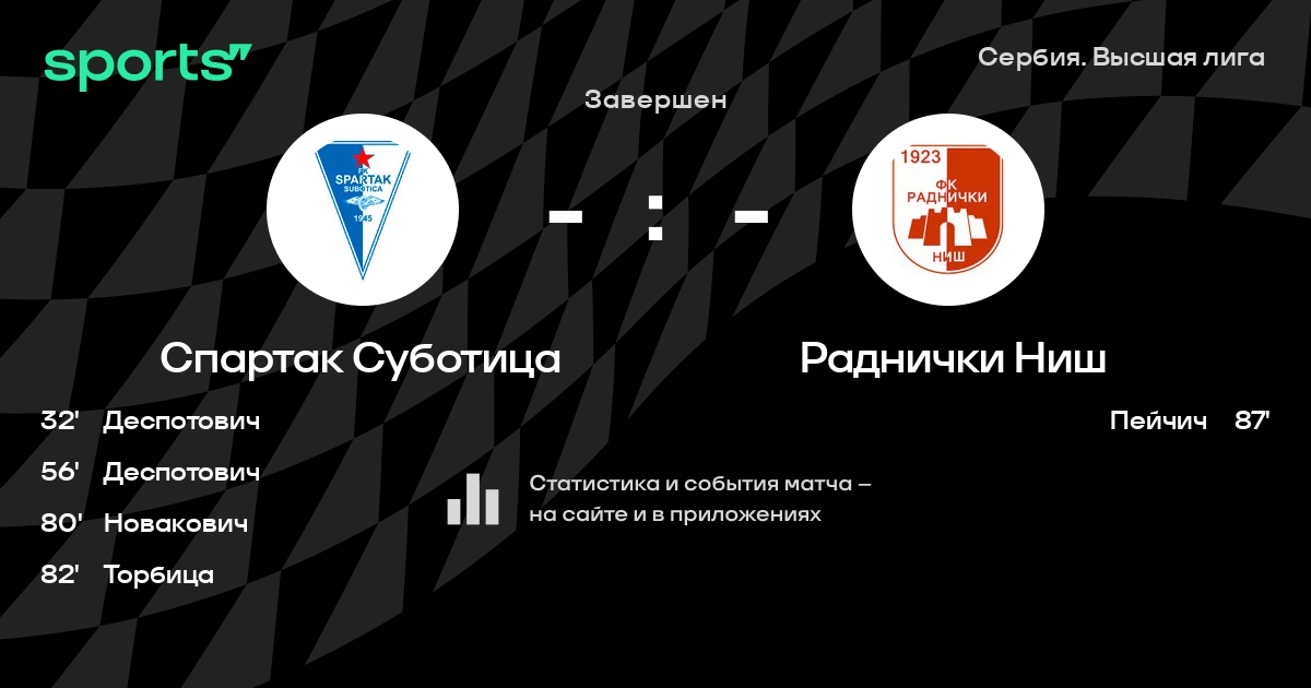 Трансляция Спартак Суботица - Раднички Ниш