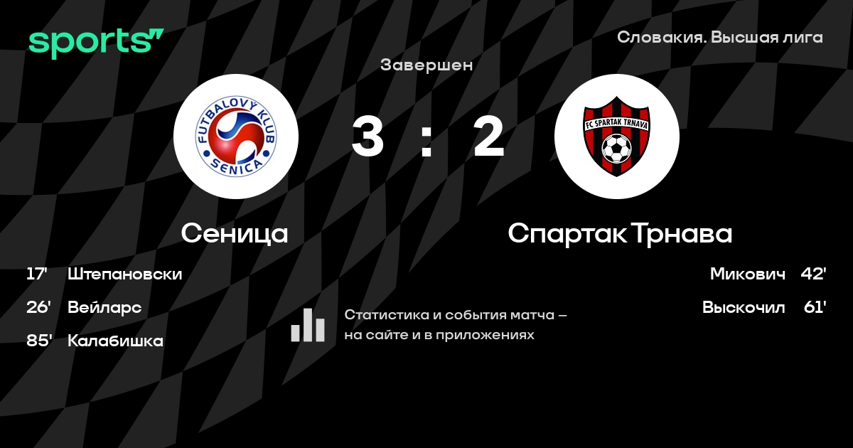 Трансляция Сеница - Спартак Трнава
