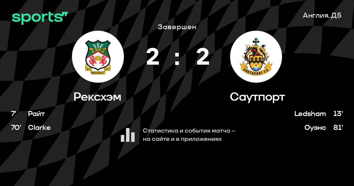 McMillan - Smith, Akrigg, Линч, Grand - Poku, Benjamin, Moogan, Ledsham - Уолли, ОуэнсЗапасные: Hibbert, Joyce, Chalmers, Бакаре, Тэймс
