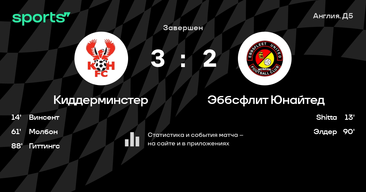 Киддерминстер – Эббсфлит Юнайтед: коэффициенты
