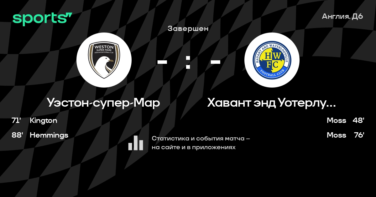 Уэстон-супер-Мар - Хавант энд Уотерлувилл: положение в турнире