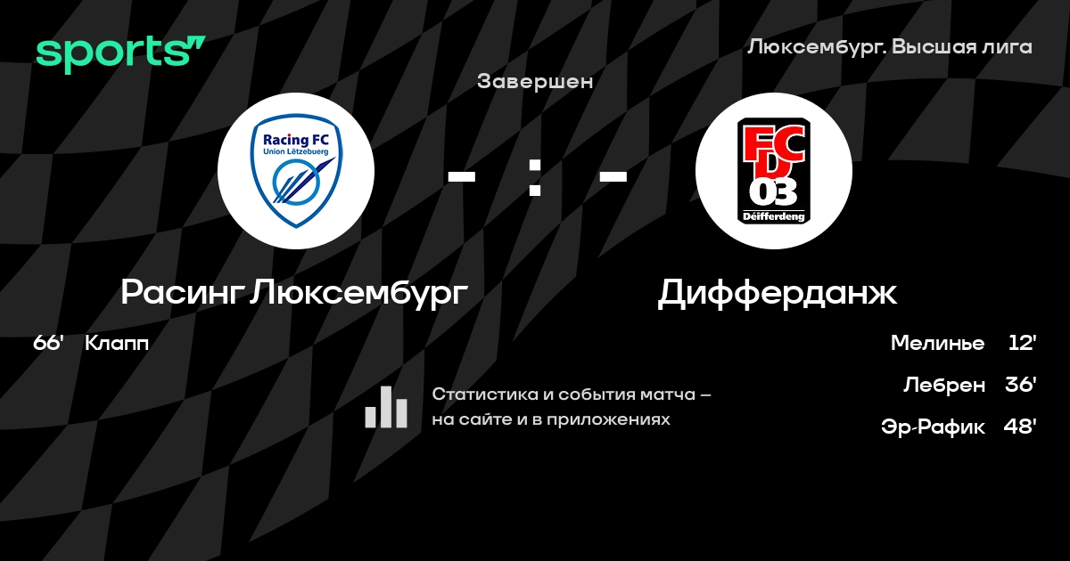 | 4 | Дифферданж | 26 | 14 | 5 | 7 | 54 | 34 | +20 | 47 | ||