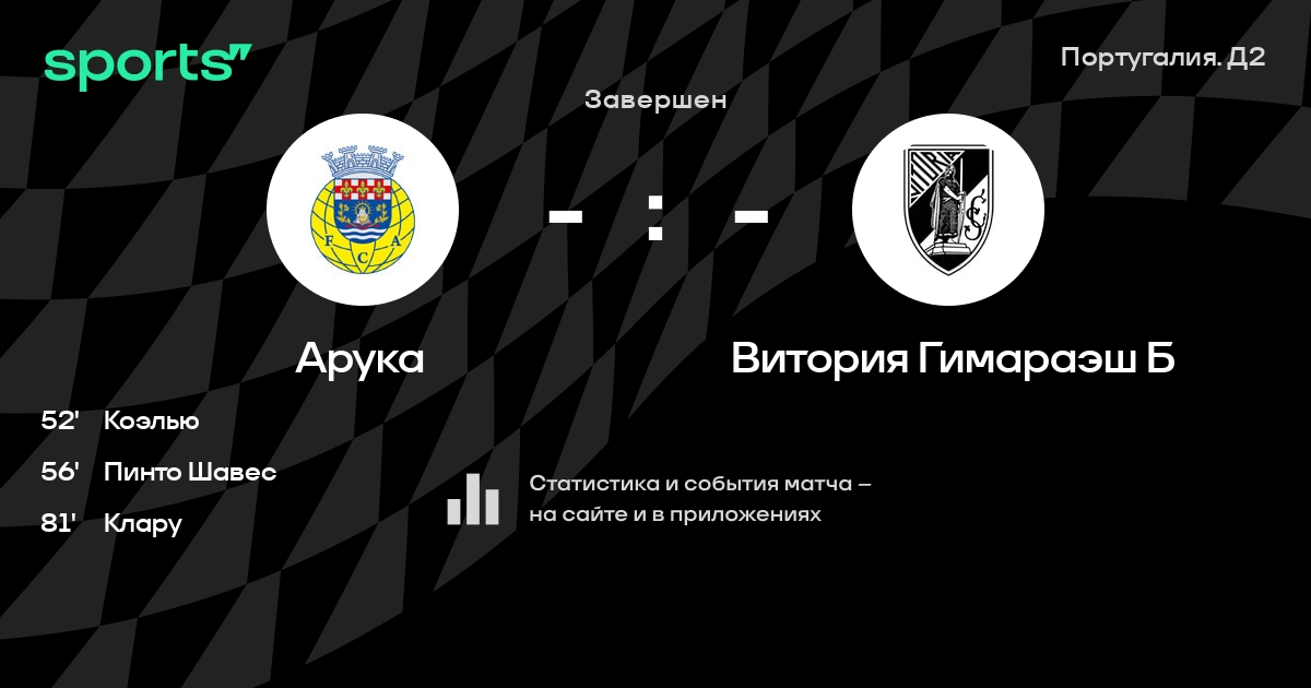 Рикарду Силва - Дасс, Фигейреду, Коэлью, Оливейра - Габи, Луиш Пинту, Лауринду, Соарес, Ковачевич - Пинто ШавесЗапасные: Игор Роша, Зараби, Morais Gomes, Бижу, Клару, Монтейру, Клементе