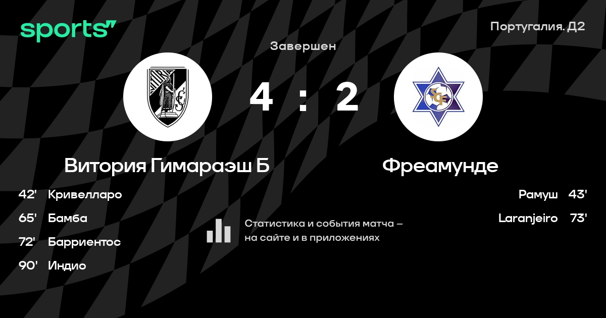Ассис - Жоау Аморим, Жозуэ Са, Валерио, Луиш Роша, Almeida - Барриентос, Кривелларо, Бамба - Эрнани, МатиашЗапасные: Палья, Туре, Ламелас, Педру Лемуш, Бруну Алвеш, Томане, Индио