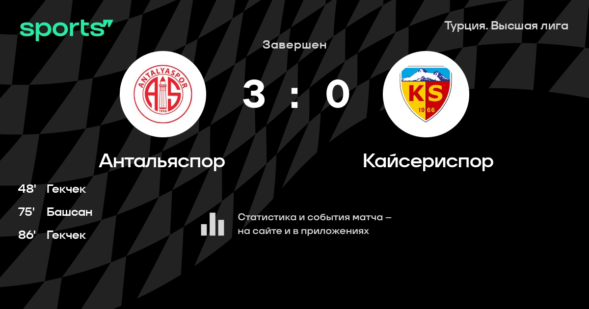 Чемпионат Турции. 2-й тур. «Антальяспор» обыграл «Кайсериспор» и другие результаты