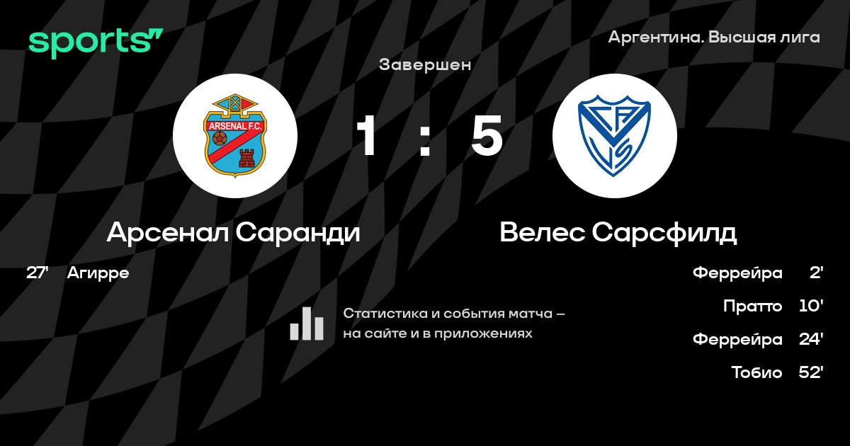 Трансляция Арсенал Саранди - Велес Сарсфилд