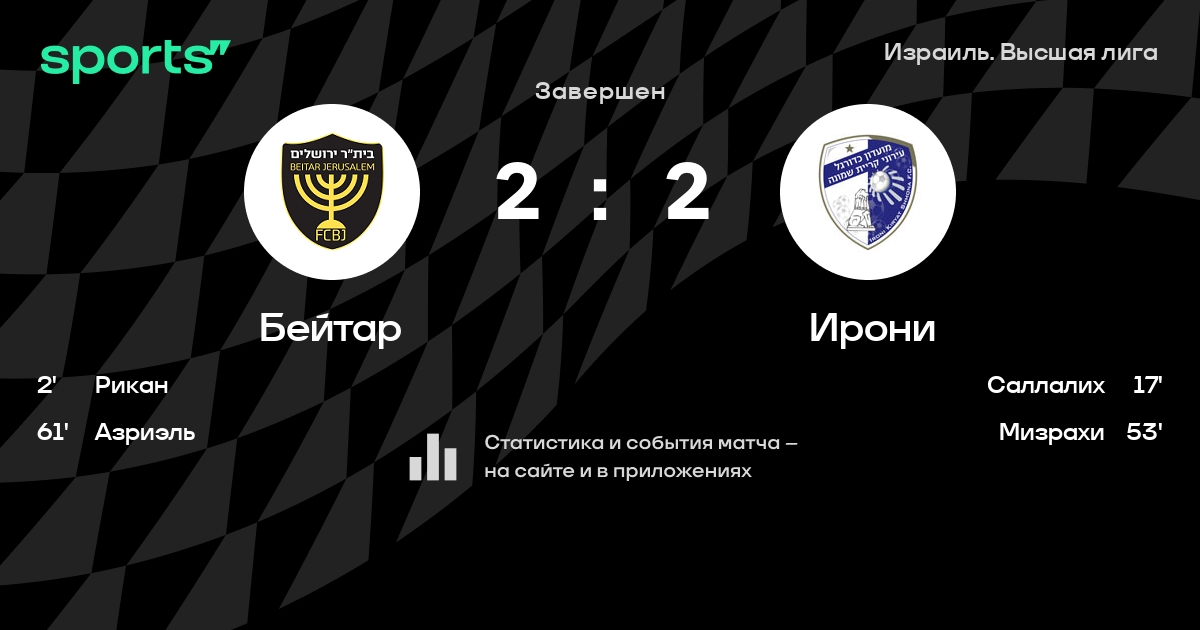 Харуш - Brashi, Шкворц, Даса, Мегрелашвили - Рикан, Фернандес, Мояль - Азриэль, Бен Шошан, ЛевиЗапасные: Saydof, Козокин, Хадад, Криаф, Cohen, Главина, Нахмани